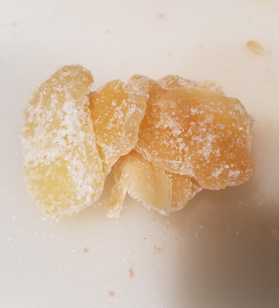 - ¼ cup crystallized ginger, chopped into small dice