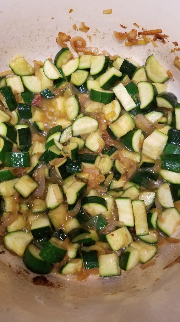 - Add the zucchini and stir to combine. Cook zucchini until softened, about 5-7 minutes.