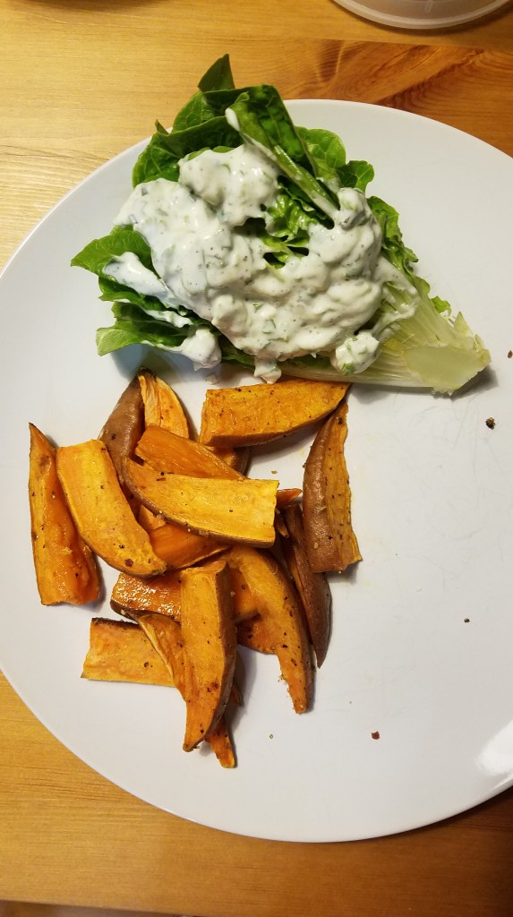 The sides! Oven fries and a wedge salad