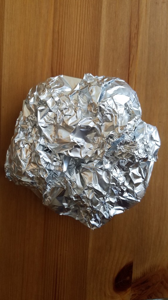 All wrapped up in their packet, ready for the oven! Notice, no gaps or open spaces at the top.