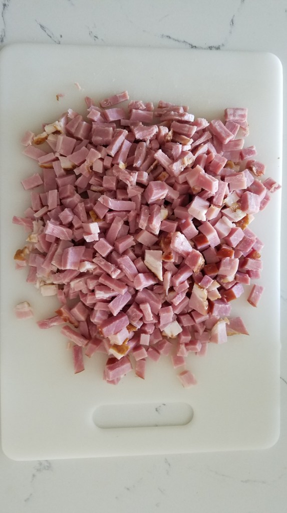 - In a large pot or Dutch oven, heat the olive oil over medium high heat. When the olive oil has warmed through, add the ham and stir to combine. Allow the ham to brown in the oil, stirring occasionally, for about 7-10 minutes. Remove ham from oil and set aside.