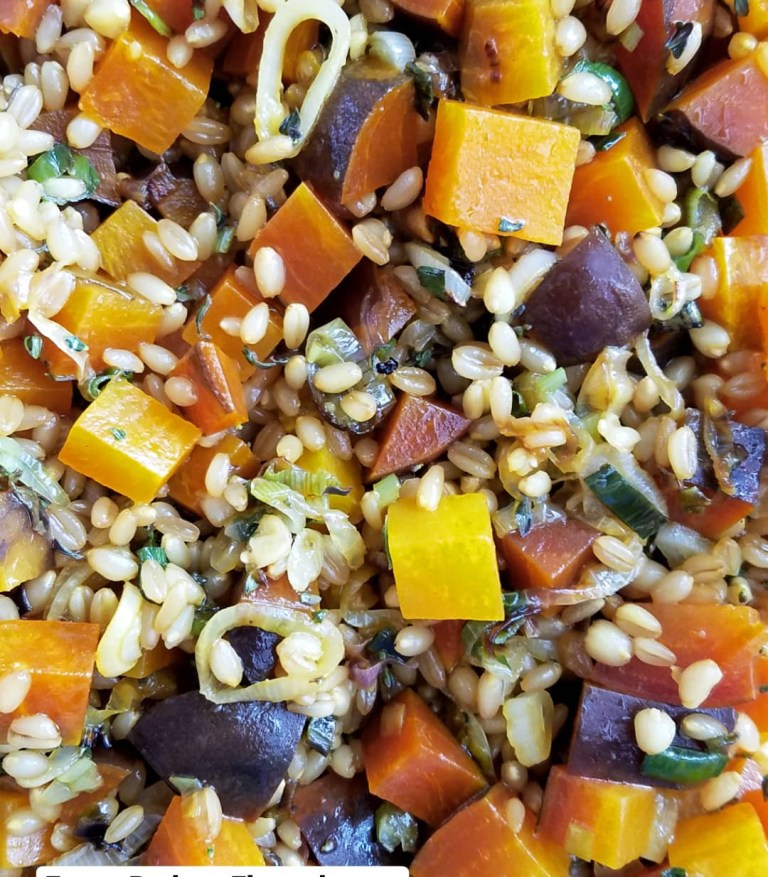 I boiled the faro for this salad while the veggies were in the oven roasting. Faro and beets have similar cook times, as faro can take up to an hour if you don’t get the pre-cooked (par-boiled) kind. I love faro for its hearty, chewy texture and rich, wheaty flavor. It holds up super well in the fridge, making it ideal for meal prep. In addition, it works very well with the earthiness of the beets and is delicious warm or cold.