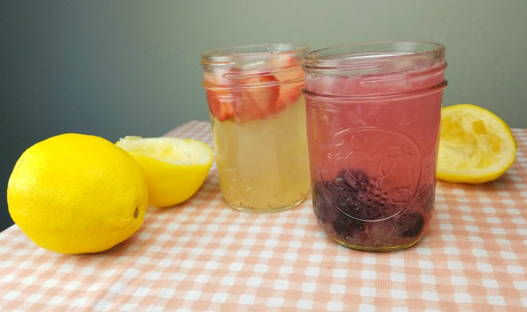 It’s a very hot 106F outside here in Bakersfield, CA, which means it’s perfect weather for a nice fruity glass of lemonade. Lemonade is the perfect summer treat, and we’ve been adding a little extra frozen fruit to the glass to cool it down even more and allow the essence of the frozen fruit to dissolve into the lemonade over time. Plus, I’ve perfected the lemonade recipe for one 8 oz mason jar, which I’m excited to share with you below! This recipe is quick, simple, and fun – with a bonus little fruit snack at the end of the drink!
