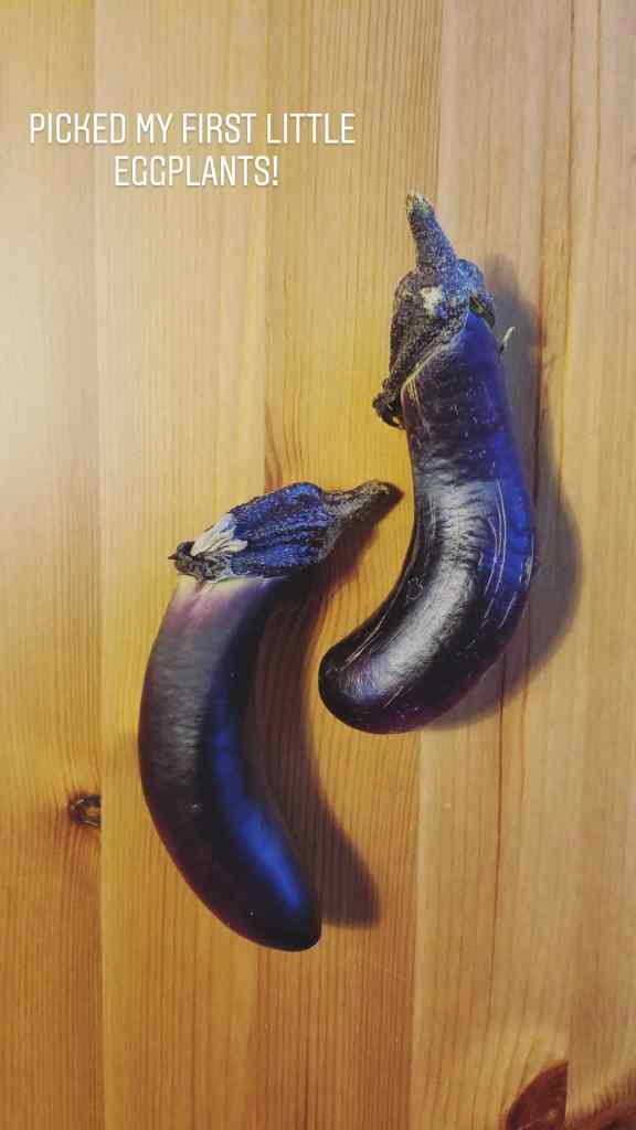 We’ll start off with the smaller and much hotter garden, my Bakersfield pots. This year, we put in four eggplant plants and have started harvesting off of two of them! My banana pepper and poblano pepper have been thriving this year, both producing far more fruit than last year, which has been very fun. My tomatoes have reached the point in summer where they are getting too hot and too much sun, but they are making a few little sungold cherry tomatoes here and there. We’re thinking of covering them with some light fabric to shield some of the light and help them out, so I’ll keep you posted if we move forward with that direction! Pictures from my little Bakersfield garden hauls below!