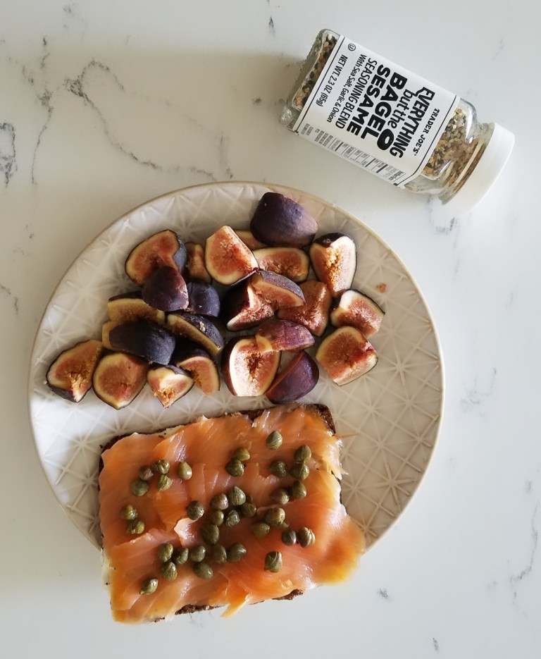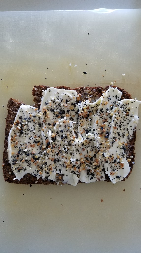 I have been craving lox and cream cheese lately (as I do from time to time). Lox on a bagel is one of my favorite foods, so I made this little lunch today to help scratch that itch. I used a seeded bread as the base (which is not nearly as tasty as a good bagel, but definitely healthier), topped with a layer of cream cheese, Everything But the Bagel Seasoning, lox, and capers. Super simple and satisfying lunch, with all of the flavor aspects that I was craving. Picture recipe is down below!