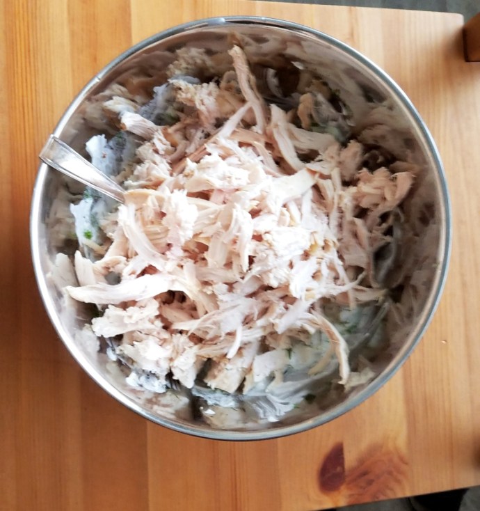 - Taste for seasoning, and add salt as needed (store-bought rotisserie chicken breasts can be salty and may not need additional salt). Stir to combine.
