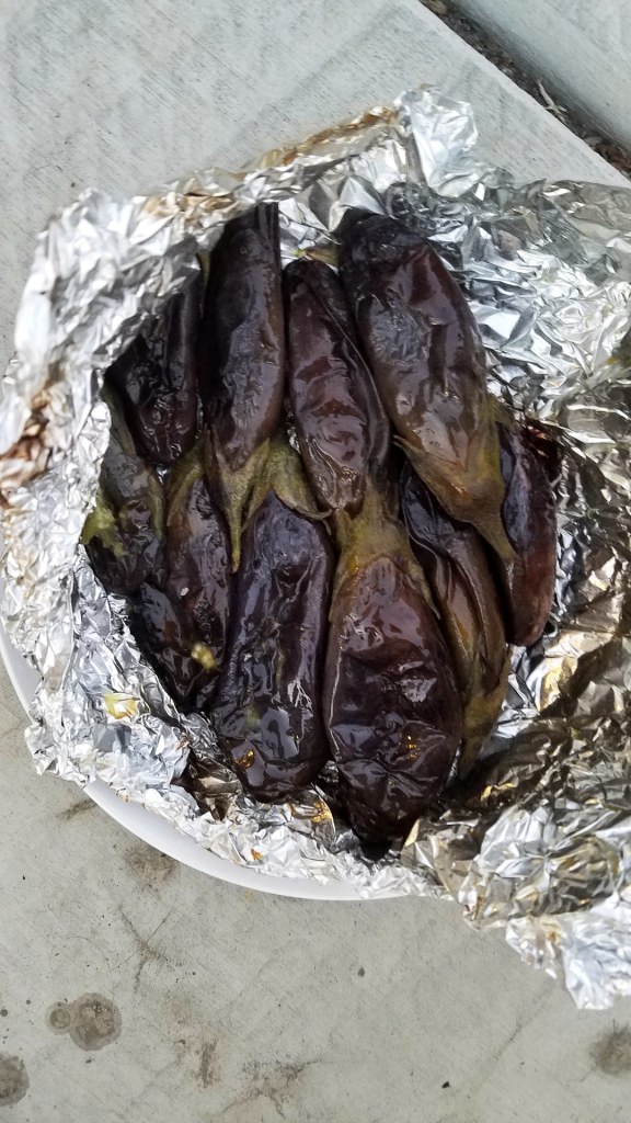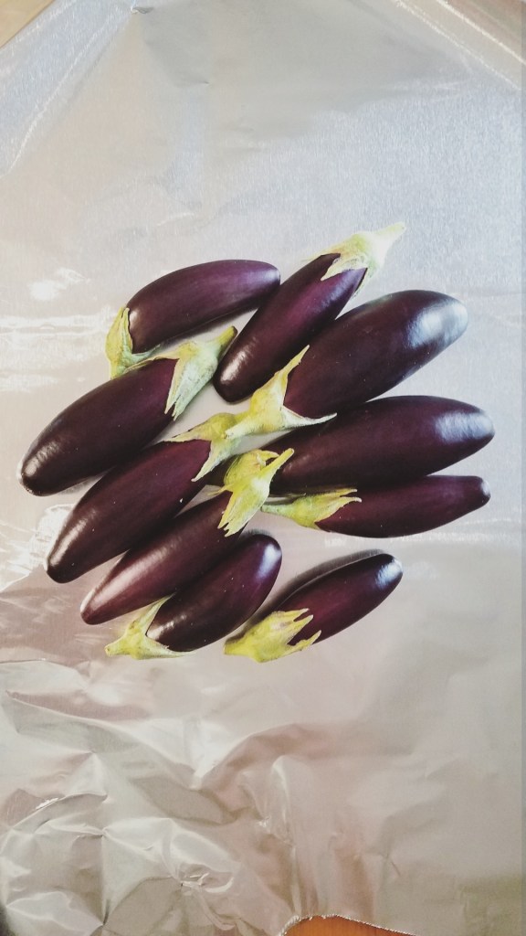 Step 1: Lay out eggplant of choice on a large piece of foil. You can keep small eggplants whole, or chop larger ones into chunks.