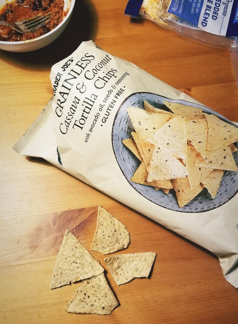 I’m usually very skeptical when it comes to gluten free items – I love gluten, and I have no problems with gluten (both physically and emotionally). But, I do like to try new things, and when I saw these grainless chips during my last trip to Trader Joe’s, I was admittedly intrigued.