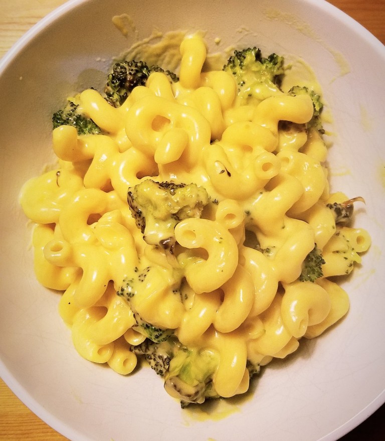 Still craving hard-core comfort foods in our house during these tumultuous times, Chris came up with the idea to combine mac and cheese with broccoli cheddar soup for dinner last night. So, I set forth and whipped up this decadent creation, full of carbs and creamy cheese sauce, and some broccoli for health (even though this is still mostly mac and cheese, let’s be honest here).