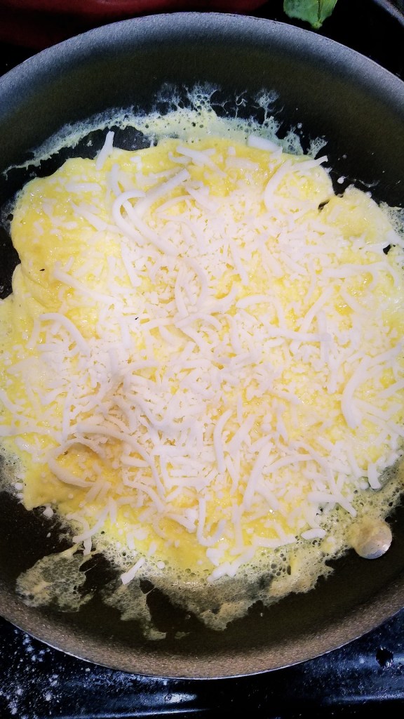 Recipe down below, photos up top and down below! This recipe is enough to make one big omelet.