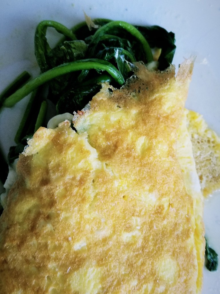 Another busy week of the half and half, work from home sometimes, pandemic life! Which means it’s time for another rendition of the Work from Home Lunch series, this week focusing on omelets! Omelets are excellent because they combine two of my favorite things: eggs, and greens (and a bonus favorite thing – cheese!). If you are a fan of the Work From Home Lunch series, you may remember that lunch is typically my main veggie course of the day, and wrapping it all up in a warm blanket of eggs and melted cheese seemed like the perfect approach for a nice winter day.