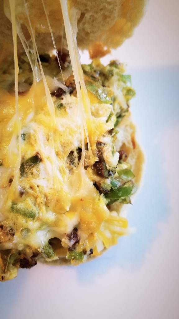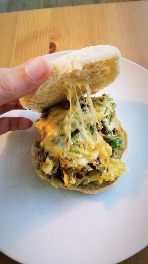 Loaded Breakfast Sandwich with Bacon, Peppers, and Cheese
