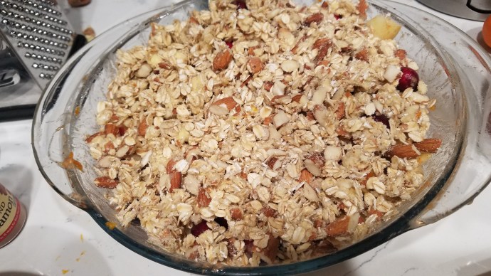 This recipe is perfect for a laid-back fall evening where you just need a sweet treat, and could even be an option to adorn your holiday dessert table. It does take a few steps to come together and an hour in the oven, but what else do you have to do on chilly fall days when it’s dark by 5PM? Dinner can be made while the crumble bakes up in the oven, so with a little time management, you can have dinner and dessert ready at the same time! This can also be made a day or so ahead for holiday menu planning. Full of apple flavor with seasonal notes of orange and cinnamon, this is the perfect treat for any cozy fall day.