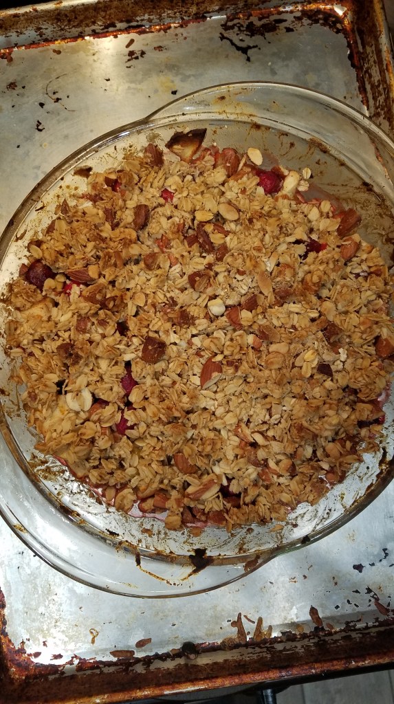 - Set the baking dish with the fruit aside while you make the crumble topping.