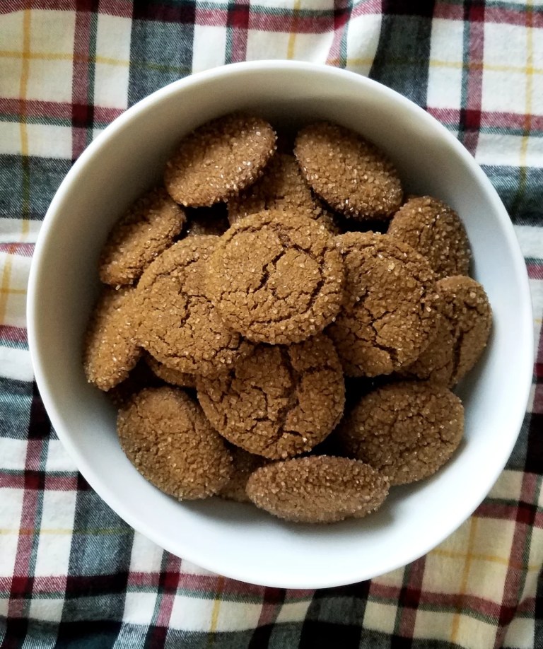 I scaled up and made a double batch of these delights, and the recipe came together super easily. I love that these cookies require no additional decoration, just a quick roll in sparkly demerara sugar that bakes into a beautiful glitter on the cookie tops and sides, and forms a crunchy, caramelized shell on the bottom as the cookie bakes. This recipe uses a heavy amount of baking soda and apple cider vinegar to give them some lift, and they come out of the oven perfectly chewy and full of molasses flavor. Finally, the ginger is paired with freshly ground black pepper, cloves, and allspice, which creates a spicy, almost savory flavor profile that I’ve really enjoyed.