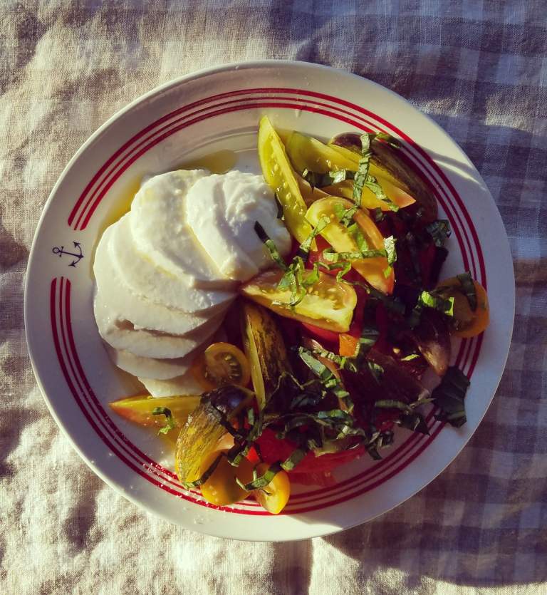 Before we dive into my recipe below, let me just preface what you are about to see with this fun fact about me: I’m a caprese purist. My recipe has only five ingredients: fresh mozzarella, fresh tomatoes, fresh basil, good extra virgin olive oil, and a sprinkle of salt. When using the best ingredients at the peak of their season, my goal is to make everything shine through. You’ll notice that my recipe contains no balsamic vinegar, because I think it completely masks the flavor of the beautiful, in season produce. It’s not needed. Good extra virgin olive oil and salt are all you need for a perfect dressing on a caprese. It’s simple and perfect, and I hope you give it a try!