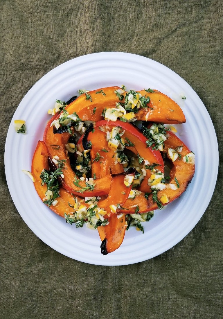 Roasted Pumpkin with Preserved Lemon and Basil Dressing