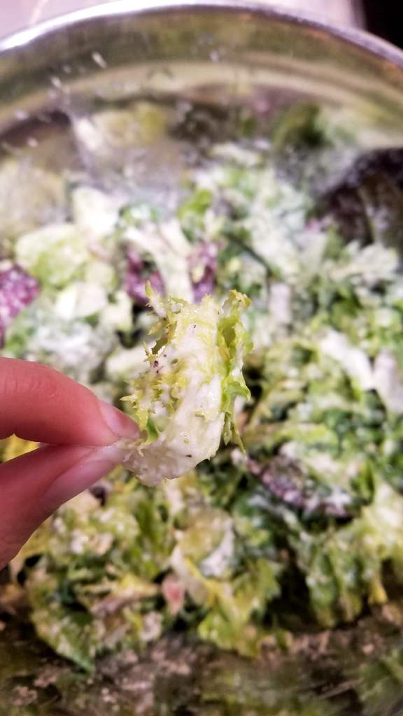 To achieve salad perfection, I usually keep the dressing and the cheese separate until I toss the salad. I recommend a big bowl for this to facilitate adequate (and thorough) mixing, as the goal is to have every leaf and topping fully coated in dressing and cheese. I start with the lettuce and add any toppings on top. Next, I’ll pour the dressing over top of all of this. For the cheese, I’ll grab my block of parm and my microplane grater and go to town, giving the salad a very generous shower of finely grated cheese (if you don’t have a microplane, the finest setting on a cheese grater will do!). Next, I’ll grab some tongs or two forks (or if it’s just me, let’s be honest, I’ll just use my hands), and toss, toss, toss, until everything is thoroughly coated. Do not skimp on the cheese, and do not skimp on the dressing either. I’m not here for dry salads, I’m here for delicious salads.