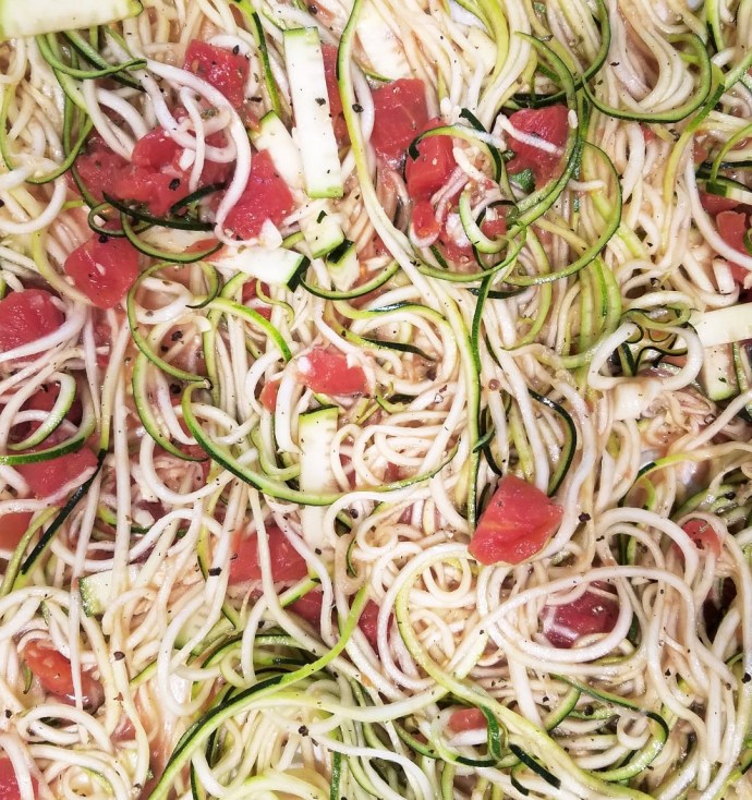 Well friends, it’s officially zucchini season, both in my garden and in my weekly CSA box. This year, I bought myself a spiralizer to prepare for the occasion, and I finally got to use it …